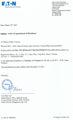 Distributor of Eaton Alert Kits (RTK) products in Vietnam |